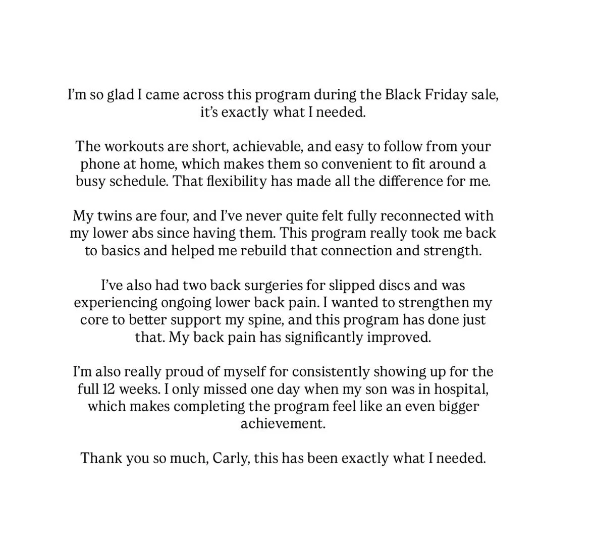 Give me 12 minutes a day for the next 12 weeks, and I’ll guide you step by step through rebuilding your core from the inside out. No crunches. No punishment. Just the fundamentals your body actually needs after pregnancy.